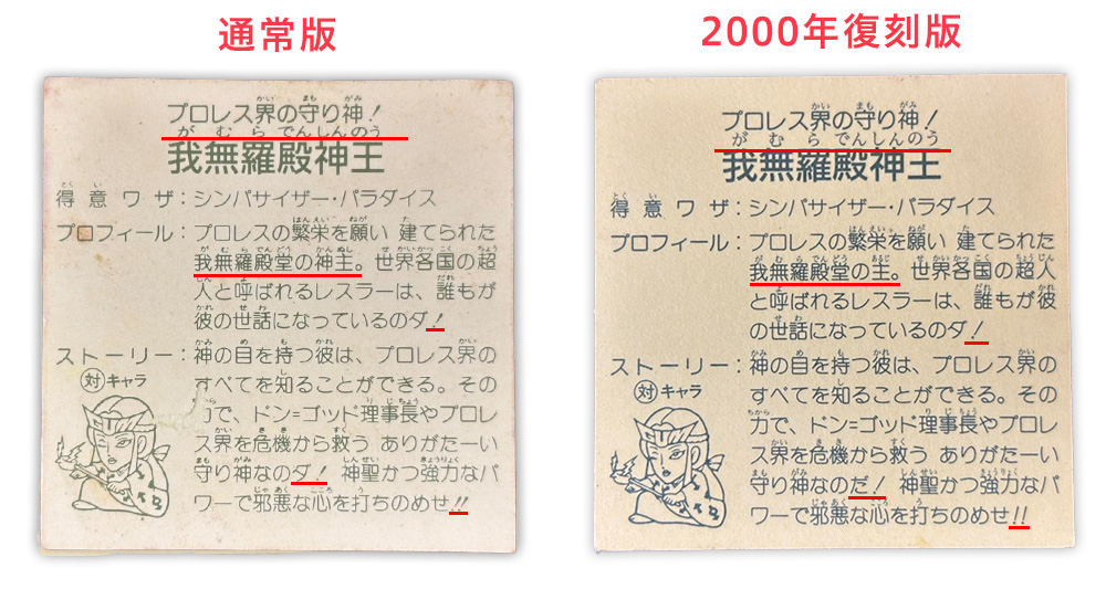 我無羅殿神王の通常版と2000年復刻版の裏紙の違う部分をご紹介します。